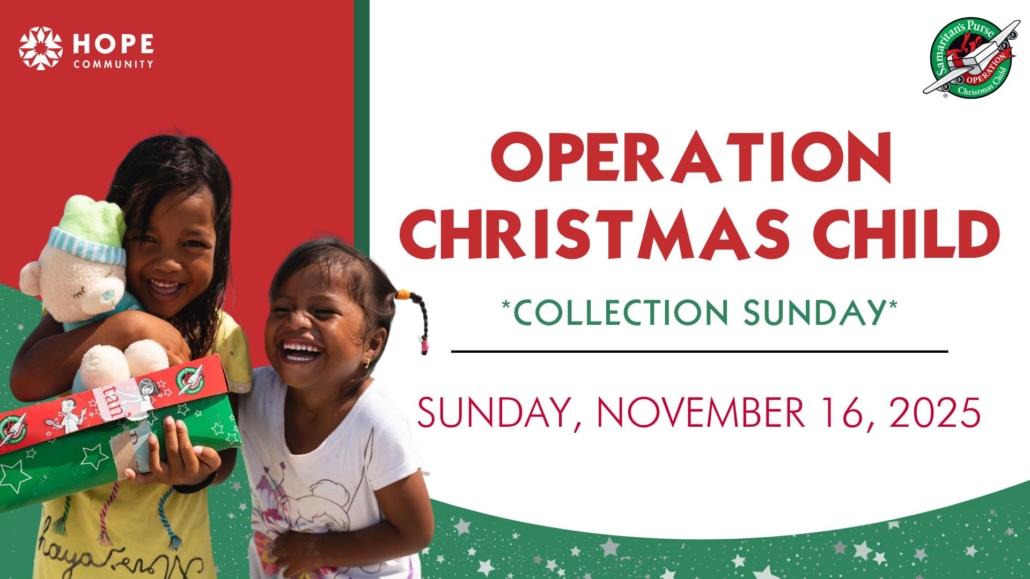 Believe it or not, Christmas is right around, and we are excited to partner with Samaritan’s Purse’s Operation Christmas Child! The goal of Operation Christmas Child is to reach children in challenging situations across the globe by blessing them with a Christmas box that contains presents and the gospel message. So, we’re asking everyone to join us in this ministry! We have lots of excellent materials over in the Corner Café.